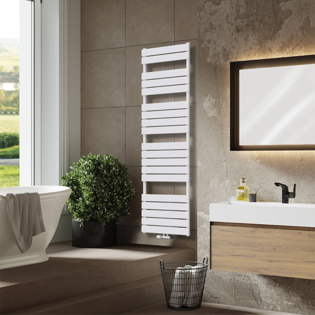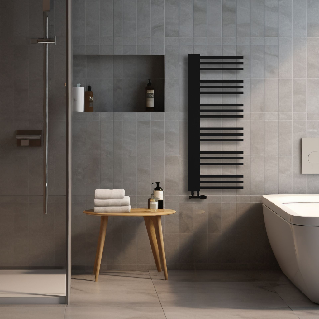 Gefertigt aus hochwertigem Stahl und mit einer langlebigen Pulverbeschichtung versehen, überzeugen diese Handtuchheizkörper durch effiziente Wärmeabgabe und dauerhaften Oberflächenschutz gegen Feuchtigkeit und Abnutzung.
